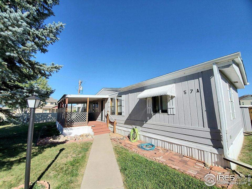 THE BEST lot of any home on the market! Fantastic, updated home located in a quiet 55 and over community that allows smaller dogs. Open layout with a gorgeous, working wood burning fireplace in the living room with rock accents. Great, fully updated kitchen with a layout that keeps everything within reach, all newer appliances and are included! Bonus coffee bar in dining room. Both bathrooms have large vanity cabinets, low step showers and extra tall toilets. Home is situated in the back corner of the community, which provides additional privacy and a great sixed yard. Huge front porch is great for entertaining, or a great place to relax. You even get a peek-a-boo view of the foothills/ mountains to better enjoy living in this gorgeous state. Small add-on room in back with dog door and metal shed. Sunset vista natural area and trail right out your kitchen window. This is the one you have been waiting for! Some furniture is even included! (Or it can also be removed if desired). Financing is available, if needed. Call listing agent for more info or to schedule a tour today!