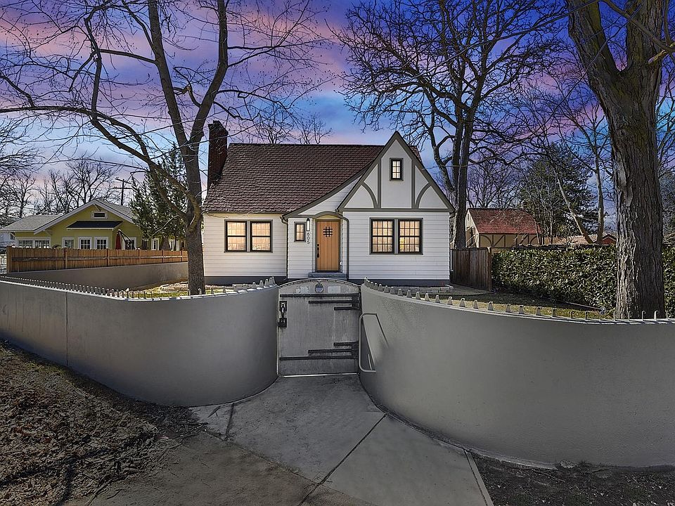 Incredible one of a kind home designed by its original architect owner. Old World Style wall w/heavy metal gates surrounds the home. Within the walls you'll find hidden storage compartments thru-out. Petrified logs & hieroglyphic rocks make up a flower garden area. Inside you'll find wonderful wood floors thru-out, 2 fireplaces, separate access to each level, mini kitchen upstairs & down. Lots of possibilities! Adorable 1 bed 1 bath cottage with garage come with the property and is currently leased.