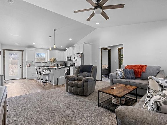 This home, less than a year young, offers modern living with exceptional features. The 3-bedroom, 2-bathroom layout boasts low-maintenance metal siding, double-hung windows, vaulted ceilings, and solid wood trim and doors throughout. The spacious kitchen includes solid surface countertops, soft-close cabinets, and plenty of storage space.