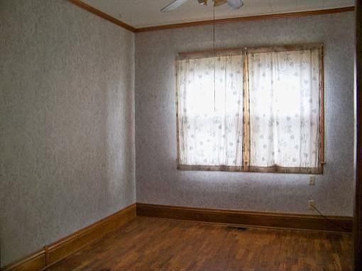 Price Reduced! 1 1/2 story, large covered front porch, living room, eat in kitchen, 3 bedrooms or 2 bedroom with dining room, 1 1/2 baths, central heat and air, garage. Hardwood floors and new carpet in 2 bedrooms.
