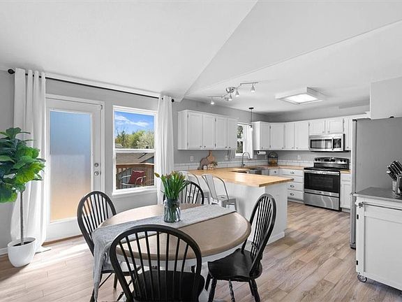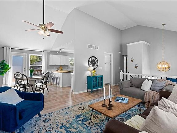 Spring on in to this cheerful home and make it yours!! The new front deck welcomes guests in and the open inviting living room and kitchen with vaulted ceiling provides a great space for comfortable entertaining. New lighting, flooring, paint and so much more! Natural light pours into the living room and spreads into the kitchen like a warm hug. The kitchen is highlighted with lots of counter space on butcher block countertops, stainless steel appliances and a farmhouse sink. LVP flooring flows from the main living areas down the hall to the bedrooms with updated lighting. The main bedroom has 2 closets and an updated private bathroom. Head on down to the spacious basement family room that's perfect for movie watching, a play room or even an office. The double deck provides space for grilling and catching some sun or relax in the shaded lower level deck off walkout basement. *Roof is only 5 years old!*AC is only 1 year old!*Both furnace and water heater are only 4 years old!*Refrigerator, Washer & Dryer Stay with home!*Great storage in the good sized shed out back!* Solar panels are a HUGE benefit for savings on utilities!! This home has so much to offer! Come claim it for yourself!