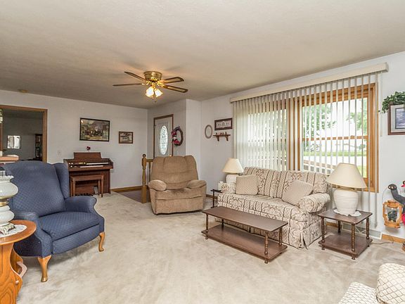 Check out this 3 Bedroom 2 ½ Bath property located on the edge of town. Large living room and kitchen/ dining room allow lots of room for family & entertaining. Brand new flooring in the Kitchen/dining. Added to that is the spacious partially finished basement with ½ bath & storage and a walkout to the back. The home has a 28 foot deep 2 car attached garage and another 12 x 28 shop attached with plenty of room for the woodworker or crafter. Updates include Roof/gutters in 2013 & Windows in 2015.