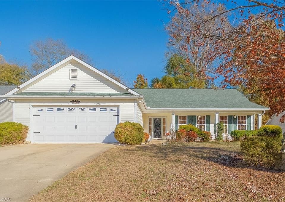 Welcome to this beautifully maintained one-story home in the Walnut Crossing community. The open floor plan and vaulted ceilings create a bright, airy feel perfect for relaxing or entertaining. The kitchen features granite countertops, tile backsplash, under cabinet lighting, stainless steel appliances, and plenty of storage. The primary suite offers a private retreat with a spacious bath and generous closet. Two additional bedrooms provide options for guests or a home office. Enjoy peaceful mornings and relaxing evenings on your front porch or screened in patio in the backyard, overlooking a landscaped yard and waterfall feature. Recently painted, roof was installed in 2023. Conveniently located between Greensboro and Burlington, with nearby shopping, dining, and easy highway access. This home offers both convenience and charm in a peaceful neighborhood setting. Book your showing today!