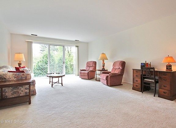 Secluded quiet setting with southern views from the balcony overlooking treetops. Spacious living room and dining room, eat in kitchen, separate pantry, two bedroom, two bath unit. Great floor plan perfect for entertaining. Large master bedroom with spacious walk-in closet. Convenient elevator building, underground heated parking plus additional outdoor spaces. Village of Golf Metra train station a short distance as well as the new shopping mall with Mariano's. Storage next to parking space.