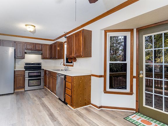 No HOA: lovely 1.5 story in Zebulon's established Wedgewood community. Step inside to discover an inviting floor plan featuring a cozy living area that seamlessly flows into the dining space. Well-appointed kitchen includes ample cabinetry and counter space. Ample upstairs storage space in closets. Living room features gas fireplace. Cozy back deck offers great opportunities to spend time with loved ones on crisp fall evenings, framed by an spacious backyard. Includes outbuilding for garden and yard tool storage. Large and brand new concrete driveway allows for 2-4 vehicle parking on premises. Located in a friendly neighborhood with convenient access to schools, parks, shopping, and dining, this home offers the perfect blend of comfort and convenience.