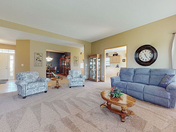 Absolutely beautiful! This move-in-ready ranch is in a family-friendly neighborhood, on a quiet street. The main level has carpet, hardwood floors, formal dining room, a fireplace, and central vac. Also on the main level are 3 spacious bedrooms, 2 full baths, and laundry. The kitchen features hardwood floors, quartz counters, and a pantry. Appliances stay with the home. The primary bedroom is located on the main level and features carpet floors, high ceiling, and walk-in closet. The primary bedroom's attached bath includes vinyl floors, laminate counters, a conventional tub, and a one-piece shower. The finished lower level features a wet bar, theater room, bedroom, non-conforming bedroom, full bath, and storage area. Outside you'll find a composite deck and porch overlooking the yard. Exterior features include a lawn irrigation system. Call or email today for a private showing. Property Improvements: - Complete Basement Finish - 2011 - Whole House Generator - 2015 - New Roof - 2020 - New Siding (whole House) - 2021 - New Garage Doors - 2021 - New Front Bedroom Window - 2021 - New Window Screens (whole House) - 2021 - New Composite Deck - 2022 - Partial New / Partial Re-Sanded Hardwood Floors (main Floor) - 2022 - Kitchen Countertops / Cabinets / Sink - 2022