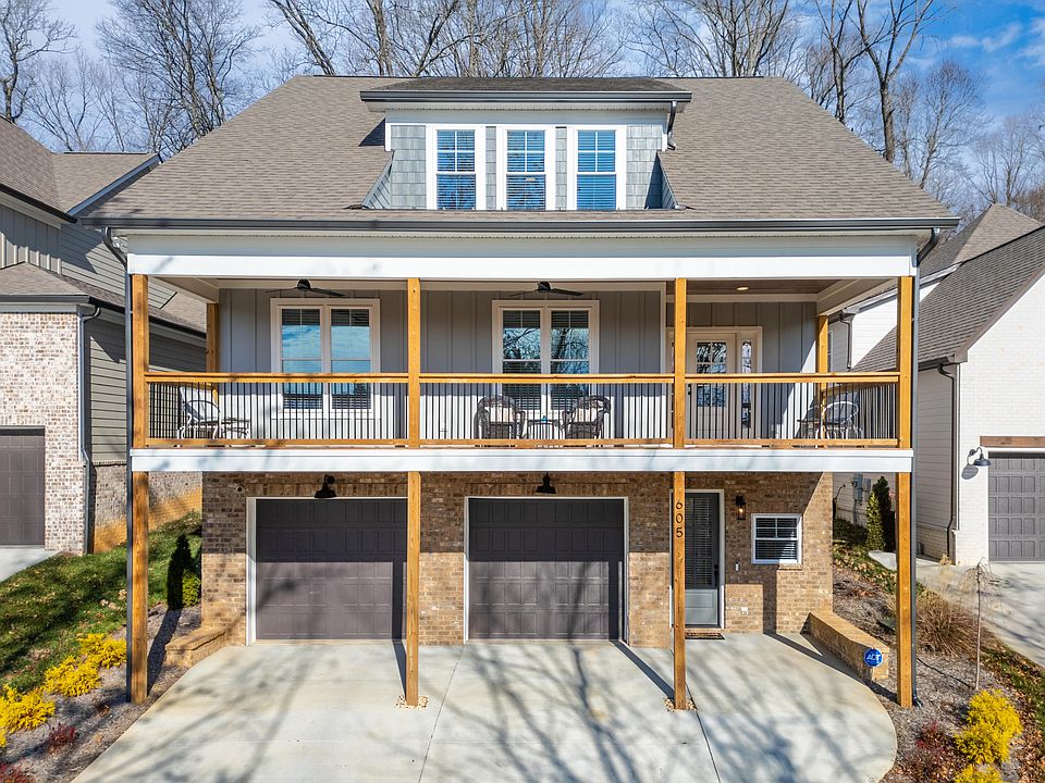 Nearly New Construction home that is loaded with over-the-top extras and located within 8 minutes of Downtown Chattanooga. The sellers hate to leave this gorgeous 8-month-old home, but a job transfer means it is available for the savvy buyer that appreciates top quality construction and impressive entertaining spaces. Buyers will love the open concept of the main level. First, a huge living room complete with gas fireplace and shiplap surround is flanked by built in cabinet storage and granite surface counters. The living room is open to a chef's kitchen with stainless steal appliances, 5 burner gas range and large island with pendant lighting and bar top seating. Beyond the kitchen, buyers will find a large full bathroom and two guest bedrooms. Upstairs is a huge master suite with his & hers walk in closets (hers is big enough to be a bedroom...) and a huge master bath with tiled floors, granite counters, two sinks, a large stand-alone soaker tub and a luxurious oversized shower with two rain heads, and a number of other wands and jets. Also off the master suite is an office that overlooks the first floor and a private deck overlooking the woods in and beyond the rear yard. Speaking of decks, this home has not one, but THREE covered decks that add nearly 800ft² of outdoor living space. Off the main level, the largest covered deck has impressive views of sunsets and the East Brow of Signal Mountain. Also, just off the kitchen/living room, another private deck opens up to the fully fenced rear yard. There are so many extras to mention gas heat, tankless hot water heater, built in security systems, a huge two car garage with tons of storage and more... Suffice to say, if you are looking for a new home with that ''Wow'' factor that is located mere minutes from the Northshore and downtown, don't wait to schedule a showing.