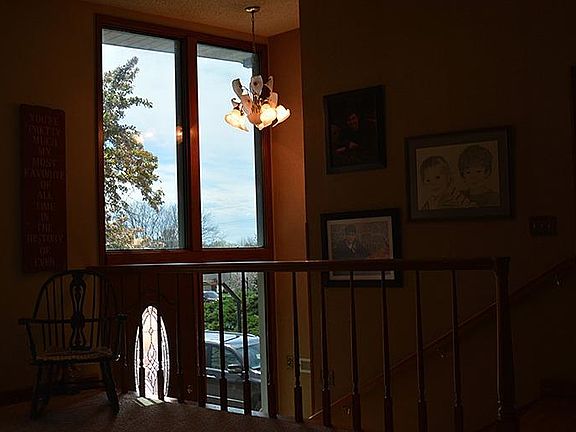 Beautiful raised-panel oak cabinetries. Large mainfloor familyroom with vaulted ceilings. 2 WB fireplaces & WB stove. Exciting lot with mature landscaping & in-ground swimming pool. New carpet up & down. Stamped concrete patio. Sliding doors to deck off Master bedroom. Lots of oak & tile flooring. Water softener is reconditioned. Sliding doors off living space to front deck. MUST Reach to SHOW. Pool heater is non-functional and will be removed.