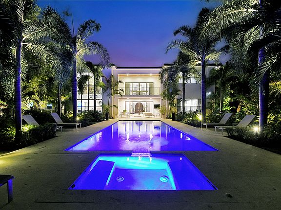 This Magnifcent furnished Estate is poised on nearly 1 Acre of the most unique and beautifully landscaped lots, complete with unique plants and rare trees, winding walking paths and even a putting green. The home features soaring ceilings, a butterfly staircase, a gourmet chef's kitchen w/ custom cabinetry, quartz and marble counters, Wolf oven, Sub-Zero refrigerator and a 7 burner Lacanche Gas Stove w/ oven. The living room has a 2 story floor to ceiling window and firecplace. The first floor also features a Media/ Game room, a bedroom & bedroom/office . Upstairs there is a gorgeous oversized Master and stunning bath, a loft and 3 additional bedrooms. Impact glass, full house generator, salt water pool, summer kitchen & gated motorcourt. *Please see supplement for Seller's Upgrades* Seller Improvements