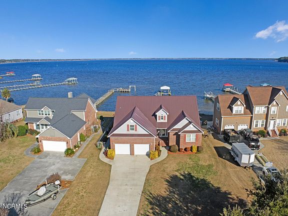 Welcome to your dream waterfront home in Sneads Ferry! This elegant 3-bedroom, 3-bathroom brick house, built in 2010, is nestled on the water, the property has a private boat dock featuring a convenient lift. A brand-new seawall not only adds aesthetic value but also ensures the protection of the property, making it a secure and scenic retreat. Inside, three spacious bedrooms provide ample space for relaxation, each offering a cozy haven of comfort. The highlight of the home is undoubtedly the gorgeous sunroom, where you can bask in the beauty of panoramic water views and enjoy spectacular sunsets every day. An added feature is the large bonus room on the second floor, offering versatile space for various needs—a home office, media room, or additional living area. This addition adds an extra layer of flexibility to the home, accommodating diverse lifestyles. Embrace the unique charm of Sneads Ferry and make this house your home, where everyday living is a scenic retreat. Take the chance to call this waterfront gem yours!