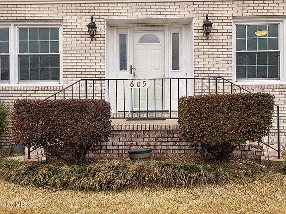 Welcome to 605 Windemere, a well-maintained 4BR/3BA home in one of the city's most desirable locations. This highly sought street is a short stroll, bike ride, or golf cart visit to the famed shops, eateries, and entertainment in Mayfaire. The home measures over 2000 sqft with an additional 200+sqft unheated sunroom. Two of the spacious bedrooms are both ensuites, creating the potential for dual primaries. The family room, perfect for casual gatherings, opens to the kitchen. A separate living room offers a peaceful option for families and guests that enjoy a little privacy. Generous window package provides ample ambient light to fill every room. Engineered wood floors throughout interior. French doors open from the family room into the sunroom creating a very functional overflow and/or flex bonus space. Step outside to the sparkling saltwater pool (2017), surrounded by a lush lawn, irrigated by private well. 12'x20' detached wired accessory building includes an additional shed roof / pole barn for storing and covering paddleboards, earth cruisers, pool toys, and everything you need to live the Wilmington lifestyle. This home truly combines comfort, location, and functionality into one great coastal Carolina opportunity.