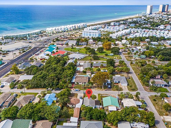 Step inside and be greeted by brand-new flooring that flows seamlessly throughout the home. The heart of this cottage is its stunning, fully renovated, including electrical and plumbing completed in 2023. It features sleek modern finishes, premium Caribbean Sunset Brazilian granite countertops, new appliances, and ample counter space—ready for you to craft your favorite meals after a day at the beach. Adding to its uniqueness, a custom-built light fixture made from a surfboard casts a warm, inviting glow, bringing coastal character into your everyday living. The bathroom has also been completely transformed with contemporary fixtures and a spa-like feel, featuring a spacious walk-in shower highlighted by a large rainfall shower head. A standout detail is the unique porthole, salvaged from a beloved local restaurant that closed its doors in recent years, bringing a special piece of Panama City Beach history into your home and adding both character and charm to this inviting retreat.