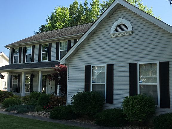 Colonial style home with covered front porch and 2-story foyer. Features 4 bedrooms, 3-1/2 baths, family room with wet bar, formal living and dining rooms, kitchen with large island and walk-in pantry, main floor laundry, and side entry 3-car garage. Highlights include beautiful pocket doors that join the living room to the great room, a floor-to-ceiling gas fireplace, crown molding, hard wood floors in the family room, kitchen and breakfast, and two large bay windows. Master bedroom suite is spacious with a vaulted ceiling and huge walk-in closet. Double doors lead to master bath w/vaulted ceiling, half-moon window over dual sinks, large tub and separate shower. The finished lower level features a kitchenette, full bath, TV space and recreation area. Additional unfinished area for workshop and storage. The backyard is made for entertaining with the in-ground saltwater heated pool, large patio, retractable awning, and grill. The home also features a sprinkler system, central vacuum, security system, and whole house fan. Newer windows and HVAC system with transferrable warranties. Working with buyer's agents. Call 618-792-0905 to learn more.
