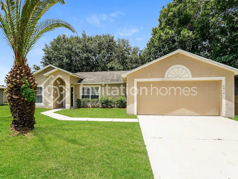 Home Features and Amenities: Air Conditioning, Bay Windows, Fenced Yard, Garage, Kitchen Island, Long Lease Terms, Luxury Vinyl Plank, Open Floorplan, Patio, Pet Friendly, Primary Bedroom on Main, Single Story House, Smart Home, Tile, W/D Hookups, and professionally managed by Invitation Homes.