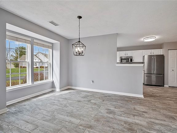 The Villas of Wood Creek Features Maintenance Free One Level Living! First Floor Laundry, 2 Car Garage and Master Suite. Full Renovation in 2021 Includes Flooring, Paint, Bathrooms and Kitchen! Living Room Features Cathedral Ceiling and Access to Private Patio with Retractable Awning. Eat in Kitchen Upgrades Include White Cabinetry, Quartz Counters and Stainless Steel Appliances. Separate Dining Area. Main Level Master Suite Features Walk in Closet with Built in Closet Organizer and Beautiful Bathroom with Ceramic Shower and Glass Doors Plus all Newer Fixtures and Double Vanity. Second Bedroom on Main Level Plus Additional Full Bath with Ceramic Tile Shower. Upper Level Guest Bedroom or Office with Full Bathroom. HOA Fee Includes Landscaping, Grass Cutting, Snow Removal, Roof Maintenance and Replacement, Pool and Clubhouse.