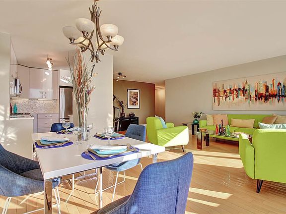 Views! Views! The finest views of NYC and beyond from any building! Looking for a spacious aerie in the sky to call home? This is it. Huge 2 BR, 2 Bath gorgeous renovated condo with floor-to-ceiling windows; and a large terrace with panoramic views of the NYC skyline from to the Verrazano Bridge. Walk in to this amazing unit and be dazzled by the views, its brand new opened kitchen with s/s appliances, quartz counters, glass back splash and hardwood floors thruout the entire home. Just painted in neutral colors. Tile Baths with new vanities and mirrors. Sit down on the terrace or in your living room and dining room at any time of day or night and watch the most amazing light show of the NYC skyline and the Hudson River you will ever see. This full service building with 24 hr concierge and maintenance, pool, and gym has the most beautifully renovated lobby. Directly on the Blvd East Promenade, you have fantastic access to NYC transportation, shopping, restaurants and highways. This home is like nothing else around especially at this price. NOTE: All Utilities included in maintenance. Balance of assessment to be paid by seller. Assessment was for New Lobby/hallways and overhall of the risers for the heating & cooling systems. All New. Assessment ends in January 2018