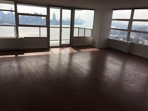 This desirable corner unit boasts dramatic panoramic NYC & river views, huge living and dining area granite kitchen, SS appliances. Rent is Negotiable!! Includes 1 car parking, full gym with NYC view and sauna, and outdoor pool. Transportation to NYC and Hudson-Bergen Light Rail at doorstep