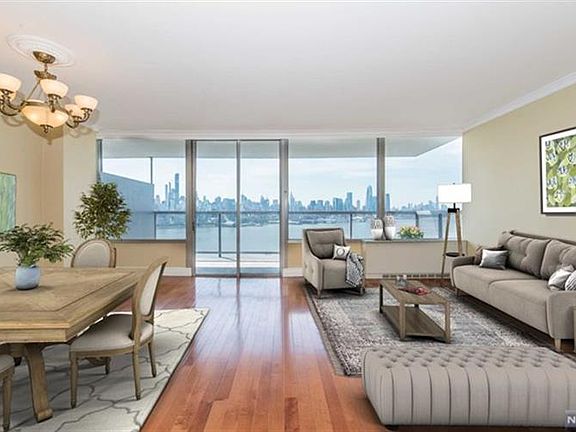 MOVE RIGHT IN to your 2-br 2-bath home with DAZZLING and UNPARALLELED NYC Hudson River VIEWS from EVERY room! This DELIGHTFUL and sun-filled unit - RENOVATED with TOP-OF-THE-LINE FINISHES - offers a living room dining area MEANT for entertaining a crowd. Hardwood plank flooring. Crown moldings throughout. A gourmet cook's kitchen with ELEGANT granite countertops, stainless steel appliance suite featuring GE Profile and Kitchen Aid, plus a generous amount of Bertch cabinetry. MASTER SUITE with dressing area and neutrally-serene full bath. Abundant closets. Gorgeous SPA-LIKE guest full bath with soaking tub. An oversize TERRACE that becomes your spring, summer and fall oasis. Monthly maintenance includes 24 7 concierge, ALL utilities; exercise room; sauna; outdoor heated pool, and 1-car parking. Unrivaled Blvd. East location with myriad NYC transportation choices at your doorstep. THIS is gracious living and your search ends HERE! (*Some photographs virtually staged.)