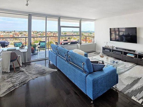 Modern Elegance Meets Skyline Serenity 1BR/1BA Condo with Garden Balcony & Spectacular Views Experience the perfect blend of contemporary design and natural beauty in this inspiring 1-bedroom, 1-bathroom condo perched in the coveted Tower West Luxury Building on Boulevard East. Offering over 1,100 sq. ft. of sophisticated living space, this home is a rare find with panoramic river and open sky views from every angle. Step into a sun-filled sanctuary framed by floor-to-ceiling glass walls, highlighting new espresso wood floors and an airy, open layout. The expansive living area is both stylish and functional, featuring a custom stone-clad buffet spanning the entire wall ideal for entertaining or everyday ease. Tucked into a bright corner is a dedicated home office nook with sky-high views perfect for remote work or creative inspiration. The chef's kitchen is sleek and industrial-chic with a gas range, stainless vent hood, butcher block counters, glossy lacquer cabinetry, and a glass-tiled backsplash. Nearby, the dining space comfortably accommodates 10+ guests, set against a stunning wave-textured accent wall for a designer touch. Retreat to the spacious bedroom with room for a king-sized bed, tranquil views, and a custom built-in wardrobe. The spa-inspired bathroom is newly remodeled with a glass waterfall shower, floating vanity, and luxurious finishes for total relaxation. Step outside to your private garden-style balcony the perfect place to unwind or entertain under the open sky.