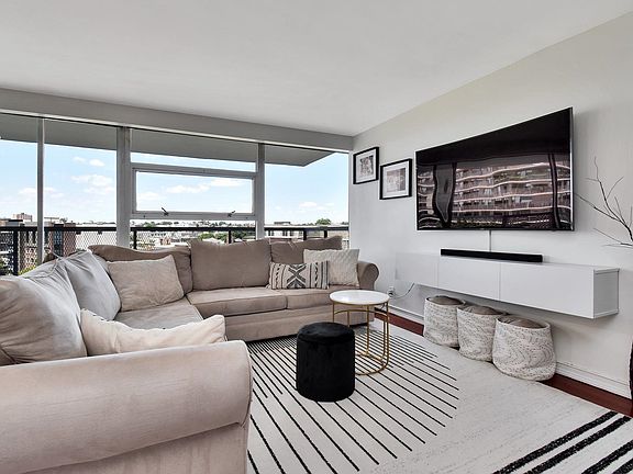 Welcome to fabulous Tower West, a full service luxury building. This light and airy, large 1100sf 1 bedroom apt has it all. Newer gorgeous kitchen with white shaker cabinets, quartz countertops, porcelain tiles, and newer SS appliances. Newly renovated stunning bathroom and newly stained doors. Abundance of closet space with custom closet organizers in BR. Custom motorized window treatments throughout, gleaming wood floors & huge terrace w/perfect sunset & west facing views make this home a must see. 24 hour concierge, renovated lobby, fitness center, beautiful pool with NYC views. Easy commute to Manhattan, bus at your door step. Parking 125/monthly, balcony assessment to be paid by seller at closing. Documented ESA/service dogs only. All utilities and amenities included in HOA fee. Tenant occupied until January 31, 2025, but tenant may be willing to vacate prior to closing.