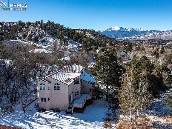ABSOLUTELY STUNNING EXECUTIVE-STYLE, ONE-OWNER, CUSTOM HOME. LOCATION, LOCATION… A PRIVATE OASIS IN THE CITY! PIKES PEAK & FRONT RANGE VIEWS. ALMOST ½ ACRE OF AMAZING PRIVACY, SURROUNDED BY WOODED HILLSIDE & HUGE, PRIVATE, TREED AREA. WILDLIFE ABOUNDS! STUCCO EXTERIOR. 3-CAR GARAGE. CENTRAL A/C w/HUMIDIFIER. Tiled foyer w/soaring ceiling & custom leaded glass. Foyer walks out to huge wooden deck. Step up from foyer to main living room w/soaring ceiling, tall windows for natural light, & gas FP w/blower. ***Guest bathroom. ***Separate formal dining room w/custom-design hardwood flooring & coffered ceiling. ***Recently remodeled Great-Room kitchen w/hardwood floor. Newer, matching appliances, incl. gas downdraft stove/range. Large center island, beautiful quartz counters, & large under-mount sink. Pantry closet. Lots of cabinets, some w/glass display. ***Large, multi-windowed breakfast nook. ***Kitchen walks out to large hillside patio. ***Very large sitting/eating area w/walk-out to huge deck overlooking private treed area. Perfect for entertaining! ***Main-level, hardwood floor bedroom w/adjoining bathroom could double as a private office. ***Upper level has a lovely, very large vaulted master suite w/large walk-in closet & huge custom-design 5-piece bath w/Jacuzzi tub, tile flooring & skylight. Deck off master bedroom has beautiful mountain views. ***Upper floor also has good-size loft that could double as an office, 2 more bedrooms, another full bath w/double vanity, and separate laundry room w/sink. Washer and dryer included. ***Lower, garden level has enormous family room w/wet bar & hook-up for gas room-stove. ***Lower level also has another bedroom & bath, 2 extra-large storage areas, 2nd set of laundry hook-ups, & a built-in safe. ***Extras: ceiling fans, casement windows on main & upper levels, lots of closets, & solid wood 6-panel doors throughout. Newer electric wiring, incl. newer panel. Plenty of guest parking. The ideal home for a sophisticated family!