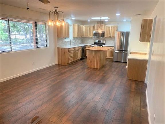 Brand new EVERYTHING! Borders National Forest Service property with tons of hiking trails and outdoor space. Completed updated and move in ready! Available today! Cherrywood Laminate flooring, Hickory Cabinets, Stainless Appliances, Marble Bathroom, Quartz Counters, Central AC, High Efficiency Furnace, Fenced back yard, covered front patio, privacy with trees located on acreage just 10 minutes from town with easy access to shopping, dining and more. One year lease, tenant pay utilities, pets on approval, no smoking. Covered carport parking and a small storage shed. Laundry hookup in place for a stackable W/D when available (there's a supply issue right now and might take several month before the W/D is available to be installed) owner will provide once available....