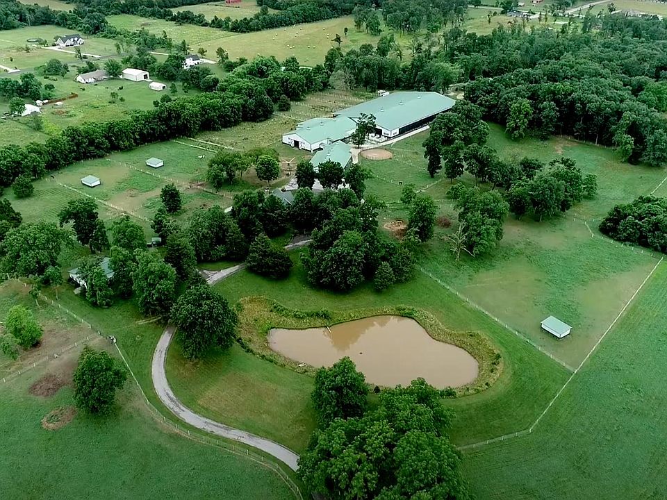 Very motivated seller! Horse enthusiasts this is your ideal luxury estate. Just minutes from Springfield & Ozark. This income producing horse farm has it all! It is far more than the average horse farm. This picturesque gated 58 acre estate is perfect for show horses, breeding, training, boarding, lessons, events, or any other horse business. The home has a gorgeous two-story entryway leading into the open living room with lots of natural light pouring in. The master suite is located on the main level leading out to its own screened in patio. A huge balcony overlooks the living room and leads to the other bedrooms and bathrooms up stairs; a craft room/office could be a 5th non-conforming BR. Formal dining room; 3 gas fireplaces, unique brick floors from back entry through the kitchen and hallways, amazing wood trim, spacious rooms, covered patio, and granite counter tops throughout! Huge kitchen with Viking appliances - double stainless ovens, warmer oven, microwave, trash compactor, oak paneled commercial refrigerator, large walk in pantry. Rental home at the front of the property is another income source, in addition to the massive horse facilities. Natural pond, wildlife preserve with approximately two dozen resident deer. Indoor and Covered Outdoor arenas, and so many other amazing features. See Highlight list in documents. Listed under appraised value, and far under replacement value. Cost the original owner over $5M to build.