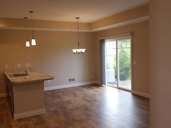 2 bedroom, 1 bath, one level townhouse available. Newly constructed in 2018. Nice size great room/kitchen with 9' tray ceilings, fireplace, pantry and stainless steel appliances. Insulated, attached garage and private entry and patio. Nicely landscaped yard and less than 3 miles from town. Tenant pays for electric, gas and cable. Sewer, water, garbage, snow removal and lawn service is included.