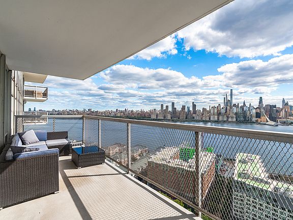 Elevated Tranquility & Front Row Iconic NYC Views everywhere Over the River are yours in this Gorgeous 2 Bed 2 Bath condo Rental. A coveted 100+- sq. ft. Waterfront new Balcony offers a private retreat to enjoy outdoor living space. An Idyllic bluff top location, 18A is situated soaring atop the 23rd story of Tower West condo building surrounded by walls of glass. It's premier waterfront position showcases sweeping Electric Iconic views that will leave you MARVELING! Step into style & Urban Luxury living. A complete thoughtful renovation captures the way we want to live now! An open concept Kitchen with Quartz covered counters, dining peninsula, newer SS appliances that will inspire the Chef, with plenty of prep counter space to cook in, dine and entertain. Down the hall find a Modern chic luxury full bath w/tub. The 2nd Bedroom is configured as a home office, Den/TV room. Tranquility & forever views await in the spacious primary bedroom suite with 2 closets & ensuite luxury full bath. Breathless views will follow you! A truly special offering. 1 car garage parking space completes the perfect abode. HASSLE FREE COMMUTER OPTIONS TO NYC are RIGHT IN FRONT of the BUILDING! A 5-mile commute to NYC is steps away! Rent includes ALL UTILITIES: 1 garage pking space, Heat; Electric; A/C; Gas, h/c Water; Amenities; 24hr concierge, Live in Super, Fitness rm, Outdoor Pool, Grills on Patio. W/D room on LL. There is guest parking for a fee. Sorry NO Dogs of any kind are permitted except svc dog. Applicant to pay 1 mon. broker fee, Rental Requirements: Must have min income of 200K annually, 700 Min credit score! Don't Miss Out! 12 Month lease minimum, No Short term rentals permitted. Must have a min 700 CREDIT SCORE, Verified INCOME OF 200K ANNUALLY combined. Employment history is a necessary. All utilities are included in the rent and 1 car garage parking! 1 Month rent Broker fee applies Discount is applicable for Holidays of 20% percent if rented by Jan 3rd 2026. This is a condo and Pet rules apply; No dogs are permitted unless ES with Medical notes and or Service Dogs are permitted with documents. Balcony rules apply.