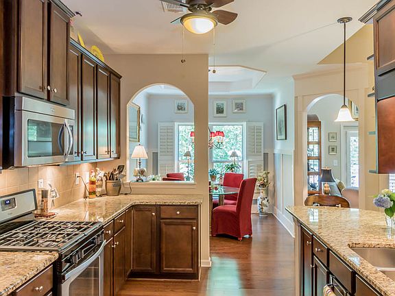 - Kitchen Features: Breakfast Bar, Cabinets Stain, Breakfast Room, Eat-in Kitchen, Stone Counters, View to Family Room, Pantry Walk-in