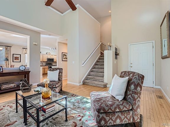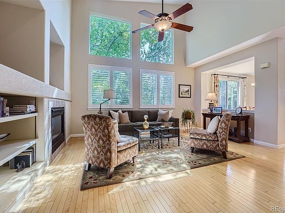 Step into this beautifully maintained home with vaulted ceilings and an abundance of natural light pouring in through large windows with plantation shutters. The rich wood floors lead you through the main living area, where a cozy gas fireplace offers warmth and ambiance. The spacious kitchen is a chef's dream, featuring an abundance of cabinets, a convenient counter bar, and KitchenAid stainless steel appliances. Upstairs, discover a small loft with a built-in desk, perfect for a home office or study space. The primary bedroom boasts a lofted ceiling, a primary bathroom, and a large closet. Upstairs you'll find two additional good sized bedrooms. The property also features an oversized 2 car garage, providing ample space for extra storage or a workshop. The home also includes an unfinished basement, offering endless possibilities for new owners to finish or use as extra storage space. Outside, the well-manicured backyard is your private oasis, with mature trees offering shade and seclusion. Enjoy this west-facing home, situated in a quiet cul-de-sac, with easy access to nearby walking trails and parks. Located in the sought-after Cherry Creek School District, this home is a must-see!