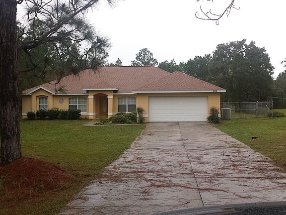 Beautiful Large 3 bedroom, 2 bathroom house in a quiet, tranquil section of Dunnellon, Florida. This house sits on an acre property with a quarter acre fenced in for privacy. You will enjoy stainless steel appliances. Washer, dryer, fridge, stove, dishwasher and mounted microwave. This house is fairly new with central air. It has a 2 car garage and a very long driveway.