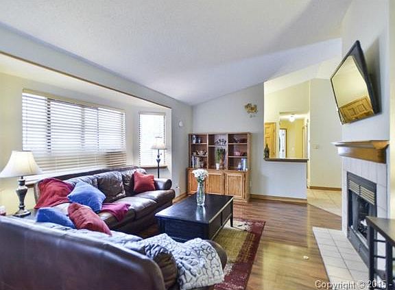 Great ranch home in desirable neighborhood! Enter from the covered porch to beautiful new wood floors and a spacious great room with a bay window, cozy fireplace and vaulted ceilings. Kitchen has tile floors, smooth top stove, almost new microwave and large pantry and knotty pine cabinets. Dining room has tile floors and walks out to wood deck. This open floor plan has a bright and airy main level master and good sized second bedroom. The full bath has a marble topped vanity and oversized oval soaking tub. Two car attached garage has built-in shelving. The home also features a newer hot water heater, six panel stained doors and lots of updating. The yard is level with terracing at the back and provides great outdoor entertaining space. Close to Ute Valley Park and lots of restaurants and shopping on a quiet cul-de-sac. The home also has new vinyl windows, three are scheduled to be replaced soon and all others have been replaced recently.