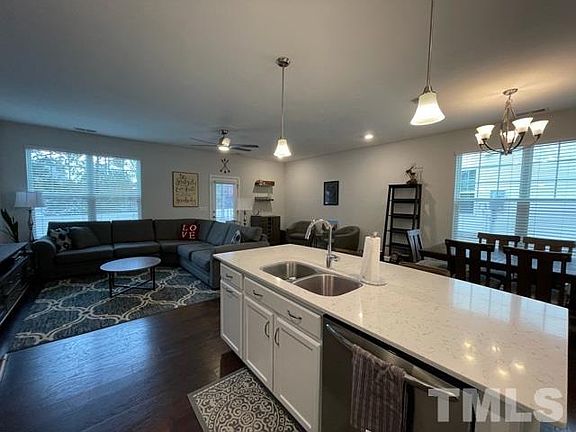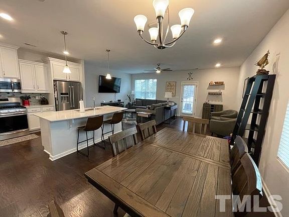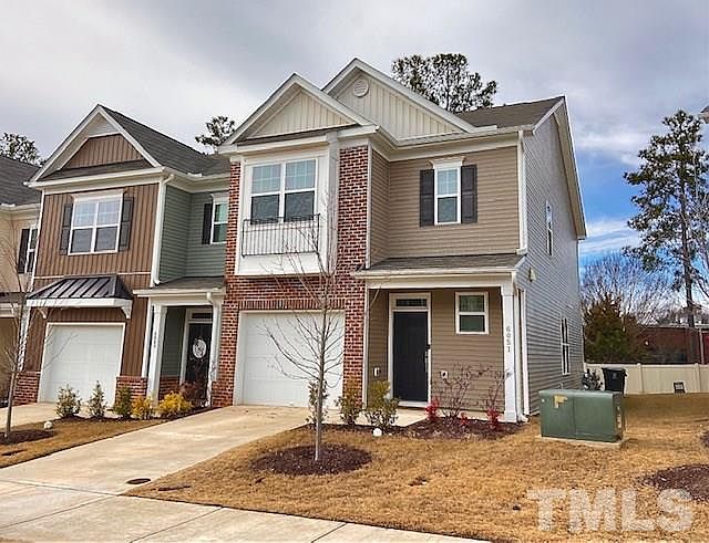 NE Raleigh end unit townhome, only 2 years old. Three bedrooms, 2.5 baths, 9' ceilings in 1st & 2nd floors. Awesome great room with spacious island & large living room. Custom shelving in pantry & in Mbdrm. walk-in closet. Large storage closet under stairs, coat closet + 3 linen closets. All appliances convey, Refrigerator, washer & dryer. Large master suite w/walk-in tiled shower, double vanities. Quartz counter tops in kitchen & baths. ATT fiber, whole home wifi & smart door bell.