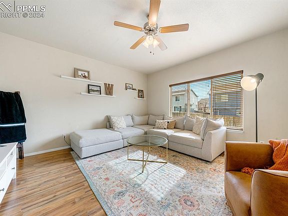 Welcome home, to a charming retreat. This exquisite single-family home offers a perfect blend of comfort and elegance, featuring breathtaking mountain views and a serene atmosphere. As you walk through the front door, you are greeted by a formal dining room, perfect for hosting intimate dinner parties or special gatherings. Adjacent to the dining room, you'll find a convenient powder room, providing added functionality and convenience for guests. Continuing into the home, you'll discover an inviting living space flooded with natural light, creating a warm and welcoming ambiance. The open-concept layout seamlessly connects the living room, dining area, and kitchen, perfect for both relaxing evenings with family and entertaining guests. The kitchen features modern appliances, ample cabinet space, and a convenient breakfast bar. Retreat to the spacious primary suite, where tranquility awaits. This peaceful oasis includes a luxurious en-suite 5 piece bathroom and ample closet space, providing the perfect sanctuary to unwind after a long day. Additional highlights of this exceptional property include guest bedrooms, a versatile bonus room that can be used as a home office or den with windows framing Garden of the Gods.The 3-stall tandem garage has been thoughtfully upgraded with epoxy flooring and stylish overhead hexagon lights, offering a pristine and well-lit space tailored for the discerning car enthusiast or hobbyist. Conveniently located in the thriving community, residents Painted Sky at Waterview enjoy easy access to a plethora of amenities, including shopping, dining, parks, hiking and biking trails, and 15 minutes from Fort Carson and Peterson AFB. With its unparalleled charm and desirable location, this is truly a place to call home. Don't miss the opportunity to make this dream home yours. Schedule your private tour today!
