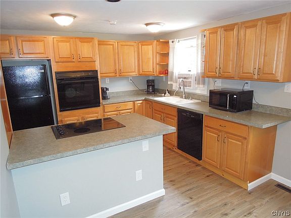 Just listed in popular and convenient Darby Farms neighborhood! Four level split with lots of updates! The open main level has modern and resilient LVT flooring throughout with a large living room and a gorgeous remodeled eat-in kitchen featuring with lots of counter space and extra maple cabinetry, sleek built-in black appliances, pantry cabinet and breakfast bar! Dining area opens to the recently stained deck with metal rails that overlooks the large (nearly 1/3 acre) back yard. There is a front to back family room on the ground level. If that's not enough space, the full basement could easily be finished with dry storage space to spare. Upstairs has 3 bedrooms and a recently remodeled full bath. All recently repainted with updated fixtures, plus an architectural roof and some newer windows & doors. Deep one car attached garage and storage shed. Just minutes to conveniences of growing retail & dining centers on Rts 11 & 31, and with convenient access to I-81 & 481, plus nearby parks, schools & Oneida Lake! Showings begin 9am Friday 9/8. Best and final offers due Sunday 9/10 by 5pm.