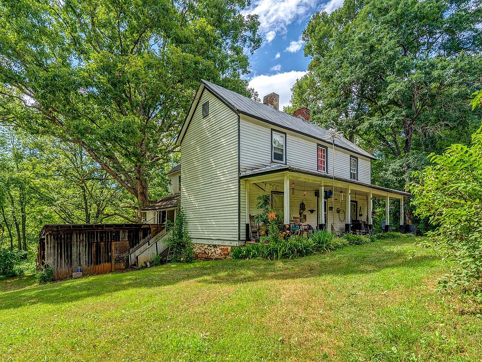 Unique Property, Rural **104 ACRES** offering Charming 4Bed Farmhouse Circa 1900, Bold Stream, Wildlife Galore, Gardening & much more! Secluded, Mostly Wooded. Convenient to the Blue Ridge Parkway! Country Kitchen w/Wood Stove & Dining Area, Laundry off Kitchen, Main Level Bedroom & Den w/Fireplace, Open Foyer, Spacious 3Beds on Upper Level, Hardwood Floors. (Farmhouse & All Structures sold ''as-is'').