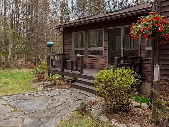 Only 14 miles to Broadway & on 53.20 acres, this fabulous contemporary is set back off the road & snuggled into the woods loaded with trails. There is a gorgeous sunroom addition w/ a gas fireplace that has views of the woods from every window. The kitchen has cherry cabinets & Corian countertops as well as stainless appliances. The finished, walkout lower level has a door to the exterior as well as two egress windows, fabulous for workouts & play space. The woodstove can heat the whole house! Perfect spot!