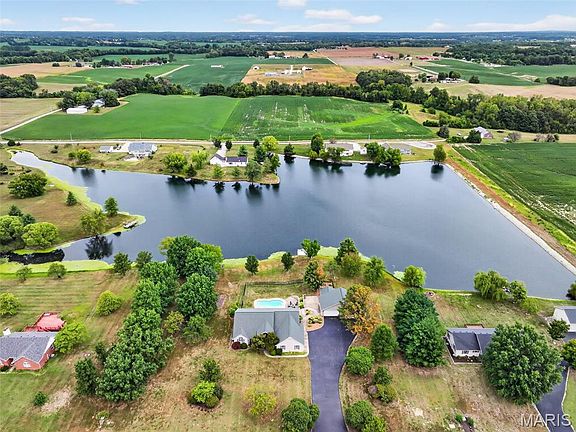 Discover this exquisite 4-bed, 3-bath home nestled on 2.53 acres. This lakefront property offers abundant recreational opportunities with direct lake access & private dock - bring your kayak, paddleboard, fishing pole or boat with trolling motor! Phenomenal outdoor space for unwinding or entertaining by the in-ground fiberglass pool (resurfaced in 2023). Gather around the firepit on fall evenings or have dinner under the pergola. Oversized attached 2-car garage, and detached 4-car garage—perfect for boat storage, RVs, classic car or workshop enthusiasts. Inside, you'll love the spacious living room with vaulted ceilings, fireplace with a stunning floor-to-ceiling river stone hearth, and breathtaking lake views. Kitchen features stainless steel appliances, solid surface counters, and large breakfast nook, providing access to the covered composite deck—perfect for morning coffee or watching sunsets. Primary suite offers a generous 17x20 space with walk-in closet and stunning lake views—your private retreat. Attached primary bath includes soaking tub, separate shower & double bowl vanity. Finished basement boasts 9' ceilings, crown molding, spacious family room, a 4th bedroom, full bath, wet bar & rec area, unfinished storage area with built-in wood shelving. Stay connected with HTC fiber internet upgrade, combining rural tranquility with faster internet.