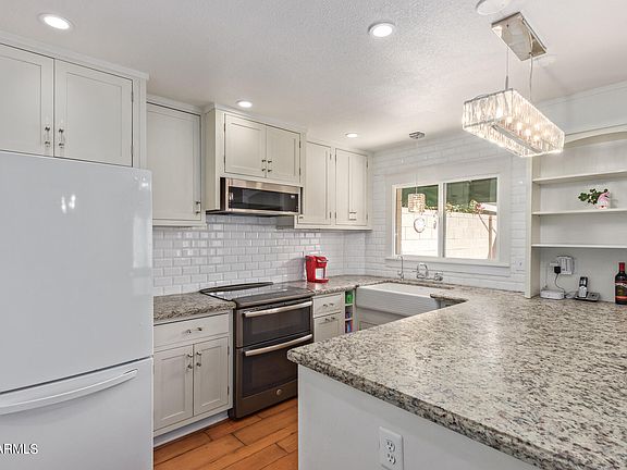 MOTIVATED Sellers! Short-term rentals allowed. Gorgeous move-in ready townhome in a fantastic Scottsdale location close to Old Town, Entertainment, Shopping, Dining & Loop 101. Enter to an open layout complete with beautiful wood floors and 6'' baseboards throughout. Oversized front window is framed by built-in shelves and drawers. Kitchen boasts granite countertops, farmhouse sink, double oven and low profile microwave. French doors lead to a charming, private back patio. This unit is located in the quiet interior of the complex facing the common area/park and just steps away from the community pool. HOA Fee includes water/sewer/trash, common area and roof maintenance. Upgrades in 2021 include tankless water heater, reverse osmosis system, electric panel, garbage disposal, dishwasher