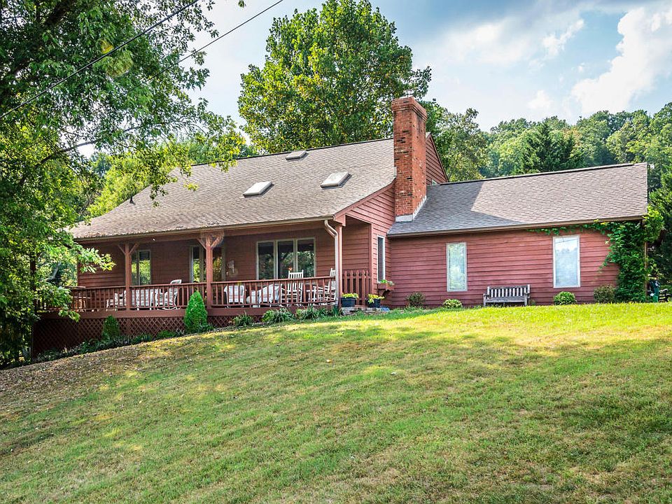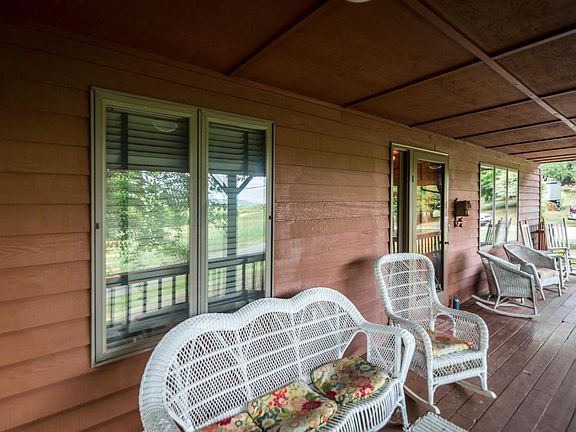 County home with rocking chair front porch and phenomenal MOUNTAIN VIEWS on 7+ acres but 5 minutes to restaurants, shopping and award winning SW County schools. Open floor plan offers great room with vaulted wood ceiling, fireplace and FIRST FLOOR MASTER SUITE. 4 stall barn with center isleway water/electric and tack/feed room. Riding/training area. Barn could also be used as workshop, mechanics dream garage or could be great studio area with views. Many possibilities. Private paved road, no thru traffic, finished basement with wood stove. 2 more upper bedrooms share large jack and jill bath. Peaceful setting with lots of options for use of land and buildings and potential to build with such a large tract of property. All parties must agree on home inspector.