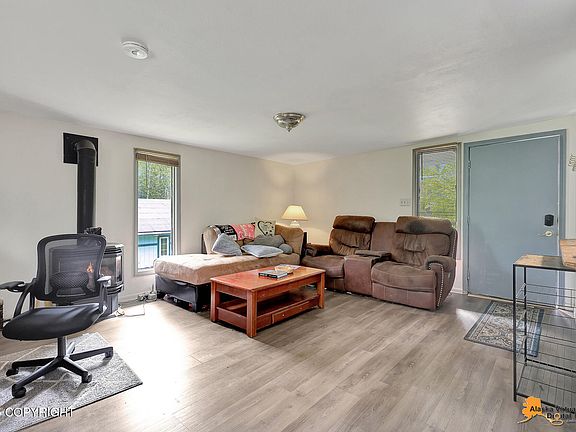 Great home with large detached shop for under 300,000! The layout allows for possible rental income or ADU apartment with one full bedroom and full bath downstairs that can be separated from the upstairs. The down stairs is set up for a kitchenette or can be additional living space. The upstairs features fresh paint and flooring along with a large deck to enjoy your quiet and private backyard.The main bedroom comes with an air conditioning unit so you can sleep comfortably all summer! The large detached shop is framed for a second overhead door if desired. The shop features 2x6 wood frame construction with 10 foot ceilings, gas heat, concrete floor with drain, and a backup generator for the house. The beautiful, private yard is fully fenced with an electric fence to keep the moose away from the apple trees and peonies. There is also a large greenhouse that is set up solar power and water to make for convenient gardening. This well loved home has more than meets the eye. Schedule your showing today!
