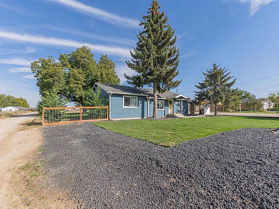 Welcome to this beautifully *COMPLETELY* renovated 3-bedroom, 2-bath home on over a half an acre of land, offering a peaceful country feel while being just minutes from town. Step inside to an open-concept layout featuring vaulted ceilings and large windows that fill the space with natural light. The modern kitchen is a chef’s dream with stainless steel appliances, granite countertops, a pantry, and breakfast bar. The master suite features dual vanities and a stunning walk-in shower with dual shower heads, providing a spa-like retreat. Outside, you'll find a large fenced yard with mature landscaping, shade trees, and a covered patio—ideal for outdoor entertaining. The finished detached garage would make a great workshop. The shed behind the garage has been converted into a large doghouse with adjacent dog-run providing plenty of space for your four-legged friends. Located just a short drive from shopping, restaurants, hospitals, and I-84, this home offers rural charm with the conveniences of town close by.