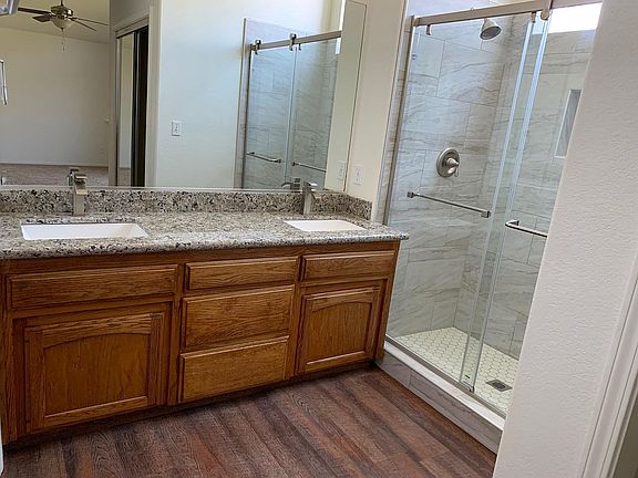 Fully renovated with LARGE SOLAR SYSTEM (7.5kw-- basically all your electricity needs included!) This beautiful home has just been upgraded with granite counters throughout, new showers, new ceiling fans in each room and new kitchen appliances. It also features a lovely kitchen island and two living rooms! Of course the Master Bedroom features TWO walk in closets.