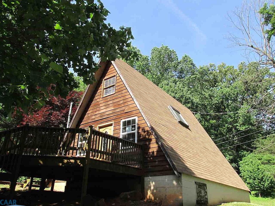 A-Frame home on 3.12 acres is located just outside of Batesville. Inside features a open family room. Outside has a wonderful area for entertaining and a storage shed with additional storage. A short commute from Charlottesville and minutes from the center of Batesville.