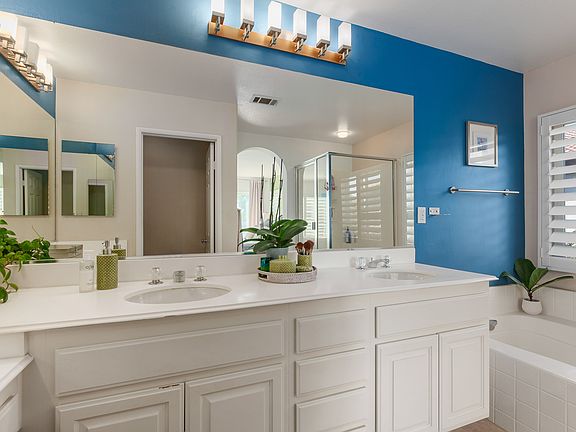 Beautifully upgraded unfurnished Rancho Carrillo home located on desirable south-west facing lot, perfectly positioned to capture breathtaking mountain and canyon views from both the backyard and private balcony. Enjoy the ultimate privacy with no rear neighbors and sunset views .Featuring hardwood floors throughout, this beautifully remodeled home boasts a stunning custom kitchen & a fireplace in family room. Laundry room with sink plus washer and dryer included. Inviting backyard ready for gas fire or BBQ hook-up. Dog friendly side yard is upgraded with synthetic turf and a designated "potty zone" with proper drainage - perfect for pet owners. Owner pays gardener