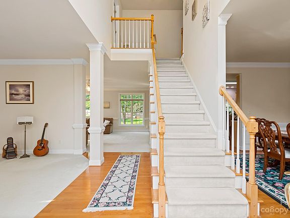 Carpet is in fantastic shape. The pristine hardwood flooring takes you into the open living room and kitchen. Check out those views of the back yard through the extra large windows. New appliances installed in kitchen and lots of cabinet space. Next to kitchen there is the 5th bedroom or office with a FULL bathroom downstairs. Feel free to take the 2nd set of stairs upstairs which leads to the spacious recreation or bonus room. Enter the wide hallway and feel how generous the hallway is. Upstairs has 4 large bedroom including the primary bedroom. Home is located in LOW Tax Union County and a very short drive to Highway 485.