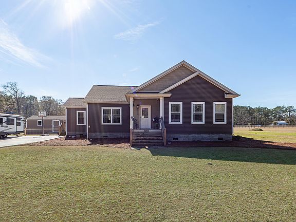 Welcome to great country living with an acre and a half of spacious property to give you lots of room with many options. The home was built in 2019 and is in almost new condition. Walking inside you'll notice the 9' smooth ceilings and LVT throughout the foyer, living area, kitchen, hallway, eat in area, both bathrooms, ''drop zone'' and the laundry/ mud room. The living area measures 15x20 and is very spacious. There are 2 large walls so you can turn the furniture many different directions. If you need a kitchen with ample cabinet and countertop space, this is it. The kitchen island offers ample space for seating and is well designed for entertaining. The eat in area will accommodate a good sized table. The 2 guest rooms are generously sized and both rooms have walk in closets.Walking into the master bedroom (12.5x16) you'll notice there is ample room for a king sized bed, end tables and multiple chest of drawers. The closet is nicely sized for many clothes and shoes. The ensuite has a large vanity with dual sinks, oversized shower, water closet and linen closet. Walking back to the left size of the home, you'll notice the "drop zone," the laundry room with basin, cabinets and folding area. The side entry door is through the laundry room as well. Walking outside you'll notice the large concrete driveway that was poured within the last 2 years. There is one of 2 30amp plugs by the side entry door for you to plug in your RV or camper. The 2nd one is by the HVAC unit in the back. The 3 year old above ground salt system pool is 18x33 and is 54" deep. The 15x36 Graceland workshop will convey. It includes a separate electrical panel and window cooling unit. Flood insurance is NOT required. The chicken coop can convey or can be removed. The chickens will not convey, they're family! The main electrical panel in the home has a surge protector installed as an upgraded feature. There is Xfinity cable/ internet service at the home and the home is on city water. This home and property truly offers so much for you to enjoy. The sellers have just outgrown the home they hoped to live in for many more years!
