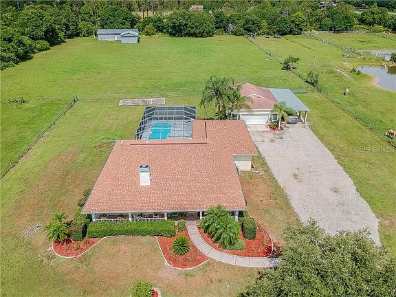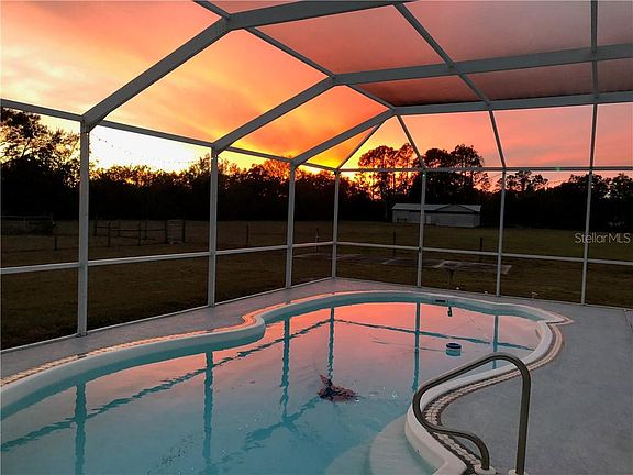 Beautiful equestrian property for sale! Elegant country living at its finest! Beautifully updated inside and out, welcome to this horse lovers paradise! This lovely 4-bedroom home features a split floor plan with a huge master suite that opens out on to the freshly resurfaced pool and deck. Newer pool pump and filter (2017). The remodeled kitchen, which flows into the patio and pool area, is perfect for entertaining Florida style. You'll love the peaceful views of almost five acres from every window of this home. Plenty of covered parking for your boat, RV etc. Roof (2019), pool deck resurfaced (2019), pool resurfaced (2019), PGT hurricane windows and French doors and new hot water heater (2020). The beautiful flat acres drain quickly. Even after heavy summer rains, theres rarely standing water. Barn is attached to the garage with 4 10x10 box stalls with rubber floor mats. Ceiling fans in each stall and the concrete center barn aisle. Pasture is divided into 2 pastures with fencing and gates. One pasture has a pond. The fencing is no climb horse safe fencing (professionally installed) and fences the entire 5 acres-great for dogs too! Perimeter is also wired for Invisible Fence. 10 x 11 Tack/feed room attached to the garage with air conditioning. Dressage trainer and hunter/jumper trainers located within riding distance. Ride your horse to your lesson! There are lots of places to ride right off the property and miles of trails very close by. Weekly trail riding neighbor group. Plenty of shows nearby and Ocala is two hours away. 2 large outbuildings. One is currently set up as a large run-in shed. The other has a thick concrete floor suitable for storing large equipment and currently houses a tractor and equipment. Rough-in plumbing and separate electric meter to the back barn. Shed off the garage for trailer and truck parking. Schedule your private tour now! Owner downsizing and motivated. Truck, trailer, tractor and farm equipment available separately.