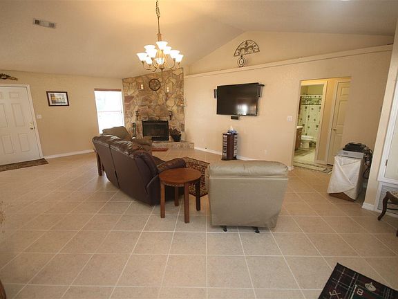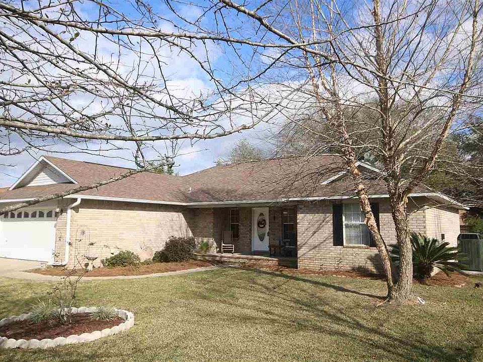 This inviting & cozy home sits on a quiet cul de sac & features a wonderful 17' front porch with plenty space for your outdoor furnishings. The back yard is fenced & offers you 2 storage/ yard buildings; an 8 x 10 built on site & tied down (1/2017) & a 10 x 12. Enjoy family cookouts on your 14 x 17 open patio or simply relax while the little ones run & play in the shaded back yard. Sellers had a NEW TRANE XL18i HEAT PUMP SYSTEM installed 6/2017 w/ a 2 speed fan, DEHUMIDIFER & 10 YEAR TRANSFERRABLE WARRANTY. The huge family room welcomes you with a beautiful wood burning fireplace (new firewall & fan under warranty 2/2018) with stone from floor to ceiling, low maintenance 16 x 16 tile flooring, lighted plant ledge & cathedral ceiling. The 16 x 16 tile flooring continues into the kitchen/ dining area & hall. Now step into the kitchen where NEW GRANITE countertops were installed Nov. 2018! Also, the kitchen cabinets received STYLISH NEW HARDWARE 12/2018. You will enjoy beautiful GE appliances, a lighted ceiling fan & the breakfast bar for a quick lunch or snack. This home is a split floor plan with the master off the kitchen. The master suite boasts a trey ceiling, lighted ceiling fan, garden tub, separate shower, double vanity, custom framed mirror, NEW LIGHTING, tile flooring & a walk-in closet. The 2 secondary bedrooms are on the opposite side of the home; both have lighted ceiling fans & large closets. All bedrooms have carpet flooring. The hall bath has a custom framed mirror & tile flooring. More features: ACTIVE TYERMITE BOND with FL Pest Control (transferrable) ~ All exterior doors, shutters & trim FRESHLY PAINTED 12/2018 ~ Replaced front porch light 12/2018 ~ 12 x 20 Cement pad/ extended driveway 4/2016 ~ 2 car garage w/ pull down stairs, 50 gal. water heater ~ laundry room with 2 walls of upper cabinets ~ gutters ~ etched glass front door ~ double gate & single gate. Convenient to schools, hospital & shopping.